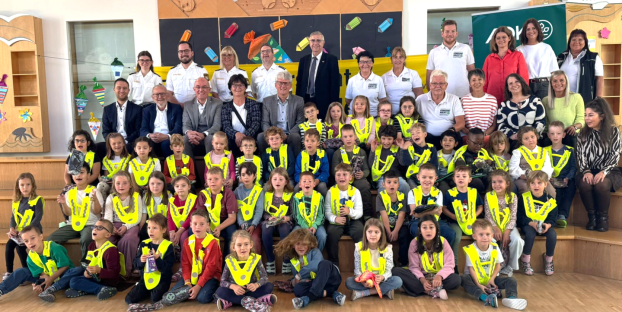 Auch die Partner aus der Region trugen ihren Teil bei: AOK-Direktor Alfred Heigl erklärte, wie wichtig es sei, dass die Erstklässler im Straßenverkehr gut sichtbar sind. Daher stattete die AOK Bayern alle Kinder mit Sicherheitsüberwürfen aus, die im Anschluss von den Ehrengästen verteilt wurden. Zudem gratulierte Daniel Seldmeier von der Sparkasse Altbayern den Erstklässlern zum Schulbeginn und überraschte die Kinder mit einem kleinen Präsent.